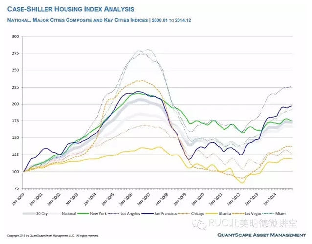 美国的房地产市场在经历了2000至2004年的上升、2005至2007年的过度膨胀以及2008至2009年的金融危机之后,于2011-2012年跌至谷底。从高峰至谷底,美国全国房产均价下跌了30%左右,重灾区拉斯维加斯、迈阿密等下跌幅度超过50%。