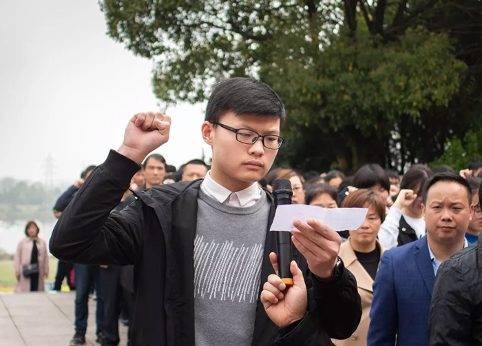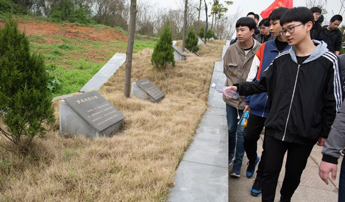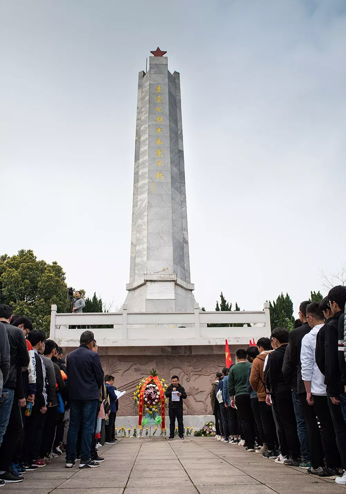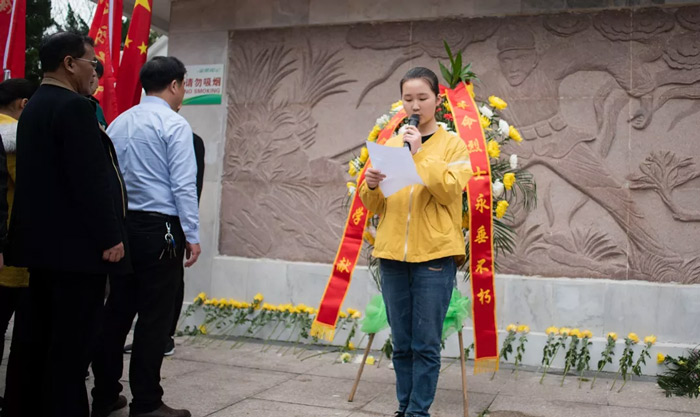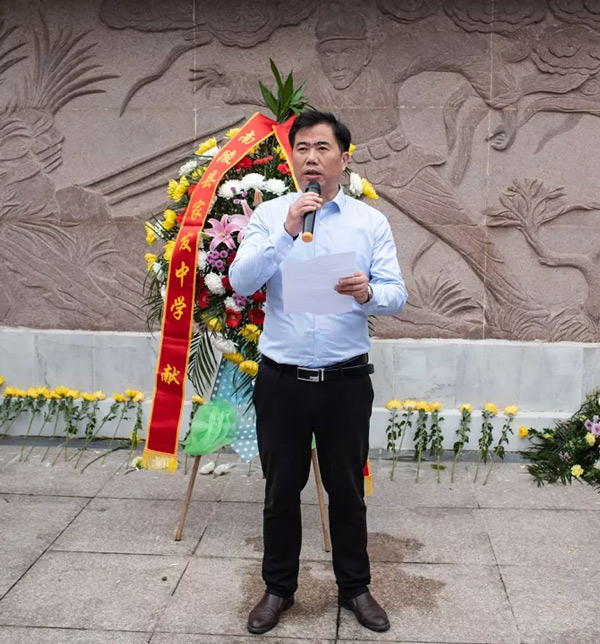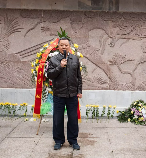 家发中学校长孙小明在纪念碑前做了发言。他勉励同学们要不忘先烈,继承遗志,努力学习,懂得自己所肩负的责任。