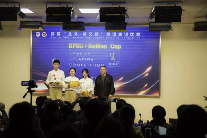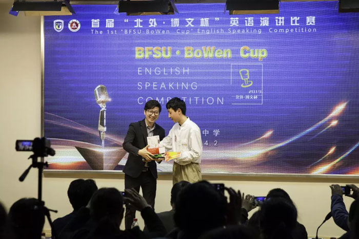 最后,北外张培主任发表讲话,他高度赞扬了博文中学与北京外国语大学的友好合作。并多次强调:博文中学是北外在全国唯一一所由北外委派专职教师授课的合作学校。他代表北外对博文学子们发出了真挚的祝福,祝愿博文“北外留学班”以及全体博文学子在未来的学习中取得更加骄人的成绩。