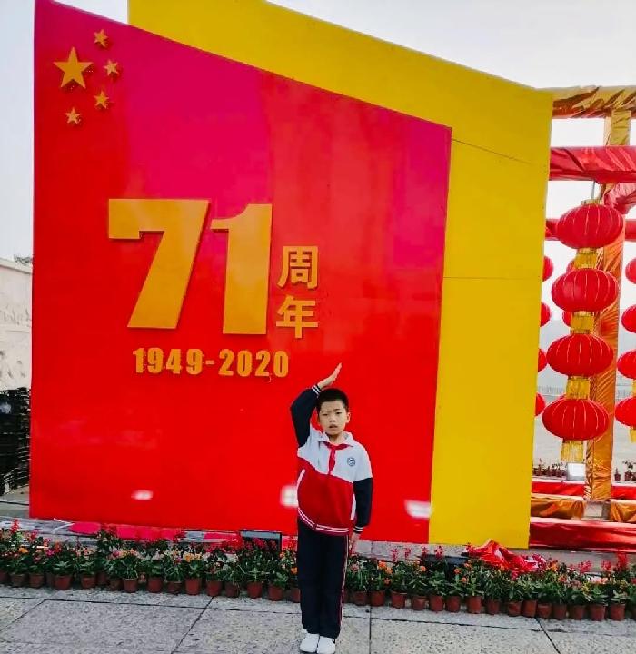 206中队辅导员特别用心地将队员们的合影拼成爱心形状,向祖国表白,为祖国庆生。