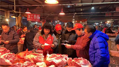 为进一步加强非洲猪瘟防控工作,规范猪肉市场监管,维护广大消费者的合法权益,确保舌尖上的安全,南陵市场监管局执法人员持续开展猪肉市场的专项检查,对城区春谷市场及其周边大阪城猪肉经营门店开展了防控专项检查,严防病死猪肉及制品流向百姓餐桌。