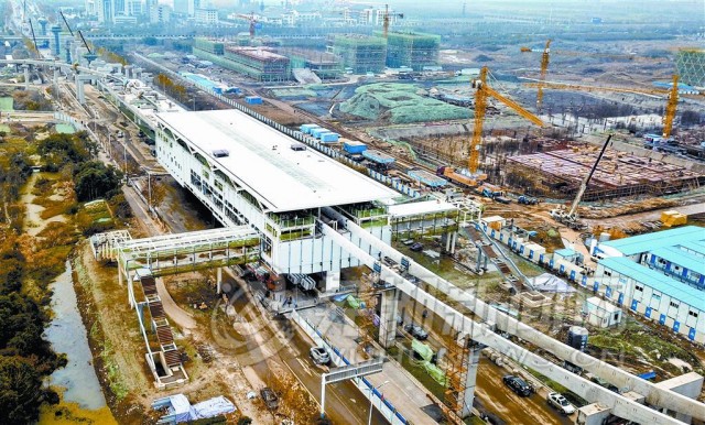 12月19日,芜湖轨道交通第八项目分部了解到,目前进度最快的轻轨站房——梦溪路站房的主体结构已经全部完工,现正在进行内部的装饰装修工程。梦溪路站房总长90米,宽24米,采用国内先进的独柱钢——混凝土组合框架结构型式,站房结构分为三层,共6000多平方米,包括站厅层、管道夹层和站台层。其占地面积小,不仅可以节省空间,也可以让机动车从站房下畅行。