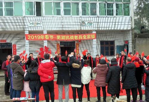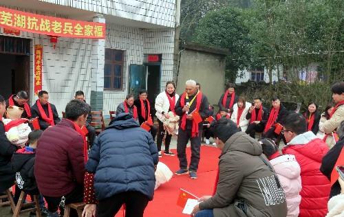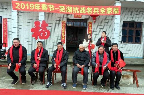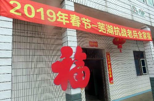 “2019年春节芜湖抗战老兵全家福”,大大的福字挂在方继来爷爷家的院子里,一派祥和喜庆的春节过年氛围,都是儿孙们精心给爷爷准备的,大家都为有一位“抗战老兵”的爷爷老人家感到非常骄傲与自豪!