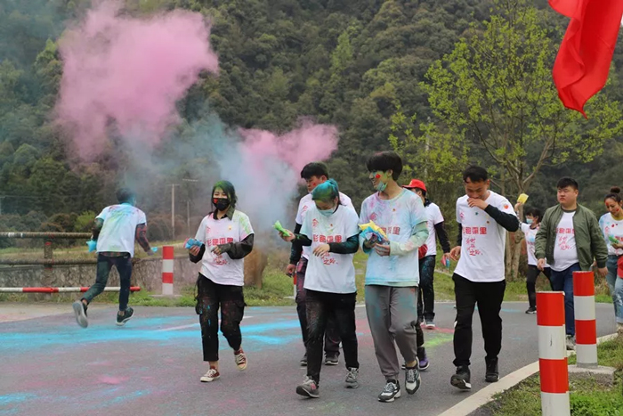 此次奔跑路程约4千米,起点设在霭里村桥头广场,途径大木山美丽乡村,终点站设在双溪堂文化广场。活动采取不计时、零压力的奔跑方式,沿途设置5个彩粉补给站,欢快的旋律全程伴随跑者,参赛者们穿着白色衣服从起点奔跑,以最炫的色彩冲过终点!