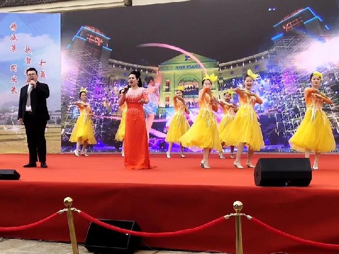 歌伴舞《向着幸福一起来》拉开了走进峨岭村扶贫日专场演出的序幕。群口快板《决胜小康说扶贫》、歌伴舞《小康路上》、小品《李享脱贫》等精彩的文艺节目赢得了现场观众的一片叫好声。现场对脱贫示范户、带贫示范户、扶贫先锋等先进典型进行了表彰。同时还开展了扶贫知识有奖竞猜、扶贫项目认捐活动。