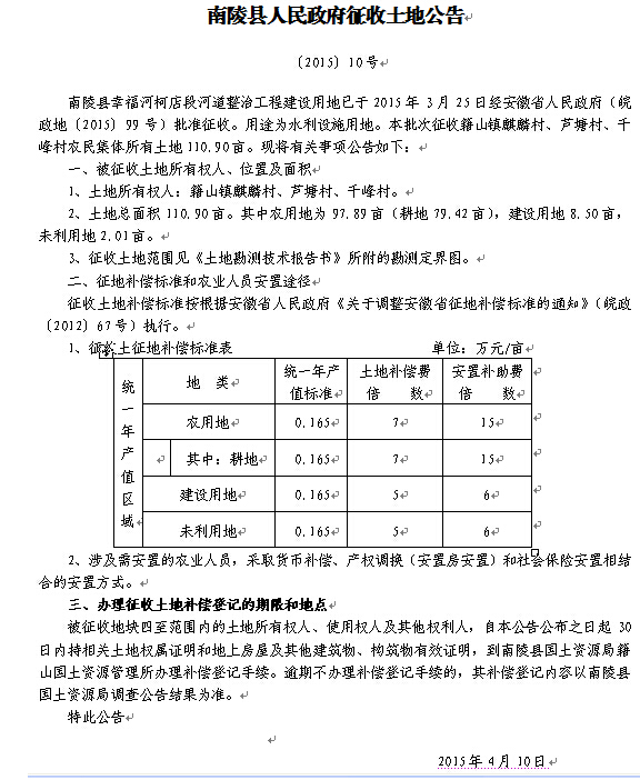 上一篇:2015—2016年南陵县政府集中采购目录及限额标准 上一篇:南陵县人民政府征收土地公告[2015]9号