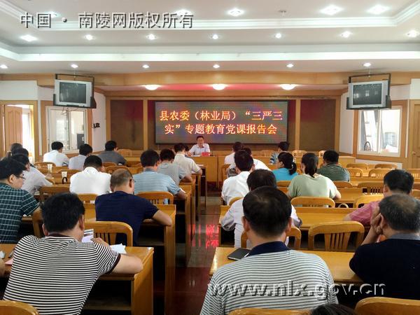 王卫东同志结合南陵县县情和农林系统工作实际,从三个方面对“三严三实”作了深刻阐述。一是要准确把握“三严三实”的精神实质和关联性。他指出,“三严三实”是新时期加强作风建设的行动指南,是打造高素质执政骨干队伍的内在要求,是推进改革、经济发展和社会稳定的重要举措。要深刻理解严以修身是基础、严于律己是前提、严以用权是目的的内涵,准确把握其内在联系。二是清醒认识当前干部队伍中存在着“不严不实”的问题。系统阐述了“不严不实”六个方面表现。三是如何做一个对党忠诚个人干净敢于担当的干部。他强调,要多读书、读好书,做到严以修身;要常思贪欲之害、常修为政之德、常怀律己之心和常去非分之想,做到严于律己;要坚持四个“管住”(管住自己的手、管住自己的脚、管住自己的嘴和管住自己的权),做到自身干净;要敢于担当、公正用权,做到对党忠诚,用力、用心和用情为民办实事。
