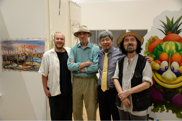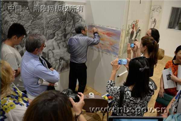 张尚明和意大利艺术家安多尼·奇志尼、亚历山大·凡尼尼、马可·乔达内还在现场共同创作了《威尼斯·日出意象》,生动地表现了两国艺术家的合作和中国文化与西方文化的交融,使现场专家和观众的赞叹不已。