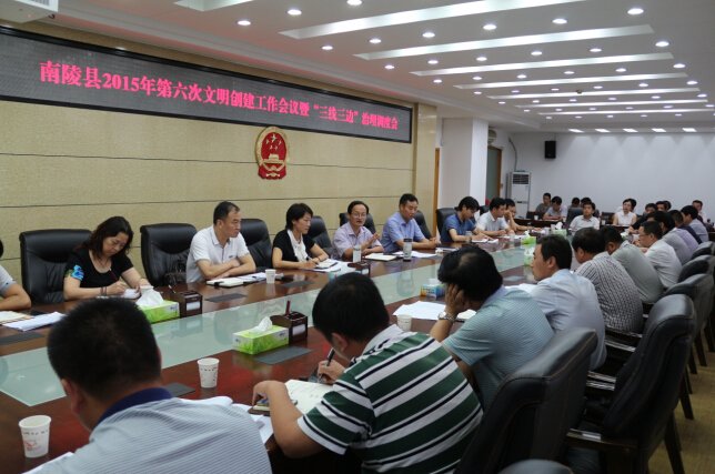 7月23日,南陵县召开2015年第六次文明创建工作会议暨“三线三边”治理调度会。县委常委、宣传部长汪绍华出席会议,县政府副县长曹昌贵主持会议,各创建主要职能部门、各镇及相关单位负责人参加会议。