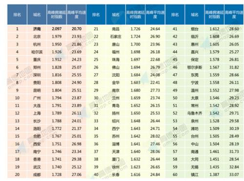 报告显示,2016年第一季度中国堵城排行榜TOP10依次为济南、北京、杭州、哈尔滨、重庆、郑州、深圳、贵阳、昆明、广州。其中,济南继去 年三季度夺魁之后,今年再次问鼎。数据显示,济南是唯一一个高峰拥堵延时指数达到2.0以上的城市,也就是说一季度济南市民由于拥堵造成的时间损失达到了 正常状态下的2倍以上,拥堵时间成本全国最高。