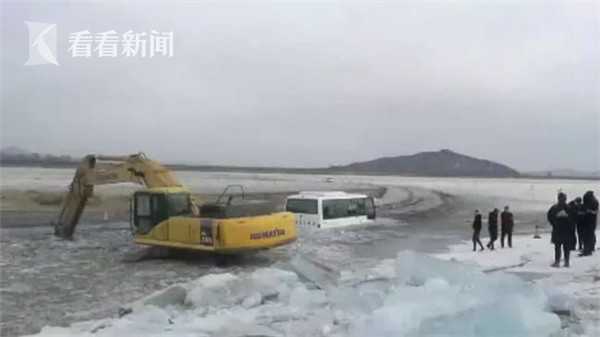 江面上,被车跑出了一条几米宽的路,就在救援客车的过程中,还可以看见有车辆通行。很快,相关部门调来钩机进行救援,并封闭了相关路段。下午17点,由于天黑不利于救援,暂时停止了相关工作,准备今天(8号)上午继续救援。