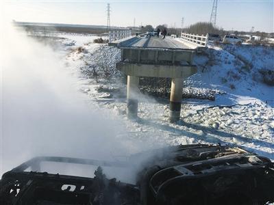原标题:黑龙江一大桥坍塌 2车坠河起火